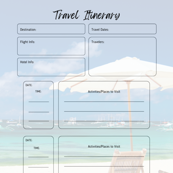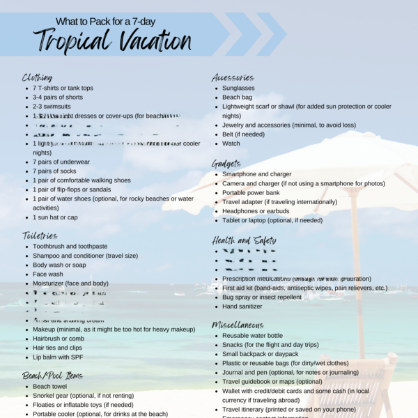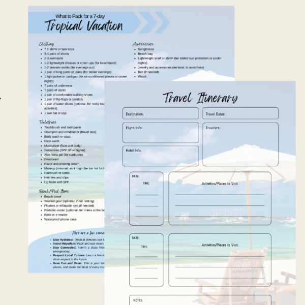 Tropical Vacation Packing List and Travel Itinerary Bundle